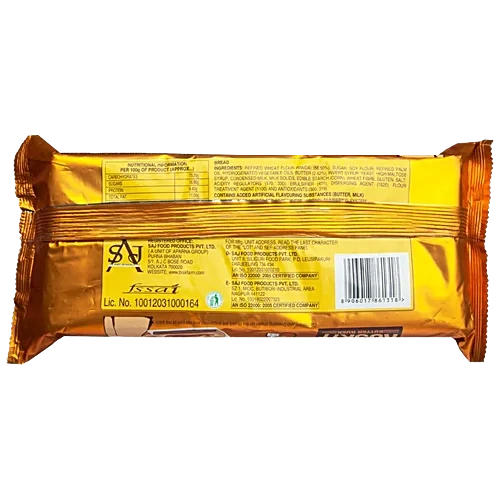 Refined Wheat Flour (Maida) (6 50%), Sugar, Soy Flour, Refined Palm Oil, Hydrogenated Vegetable Oils, Butter (2.425), Invert Syrup. Yeast, High Maltose Syrup, Condensed Milk, Milk Solids, Edible Starch (Corn). Wheat Fibre, Gluten, Salt, Agidity Regulators (170, 330), Emulsifier (471), Dispersing Agent (1520), Flour Treatment Agent (1100) And Antioxidants (300, 319) Contains Added Artificial Flavouring Substances (Butter, Milk)